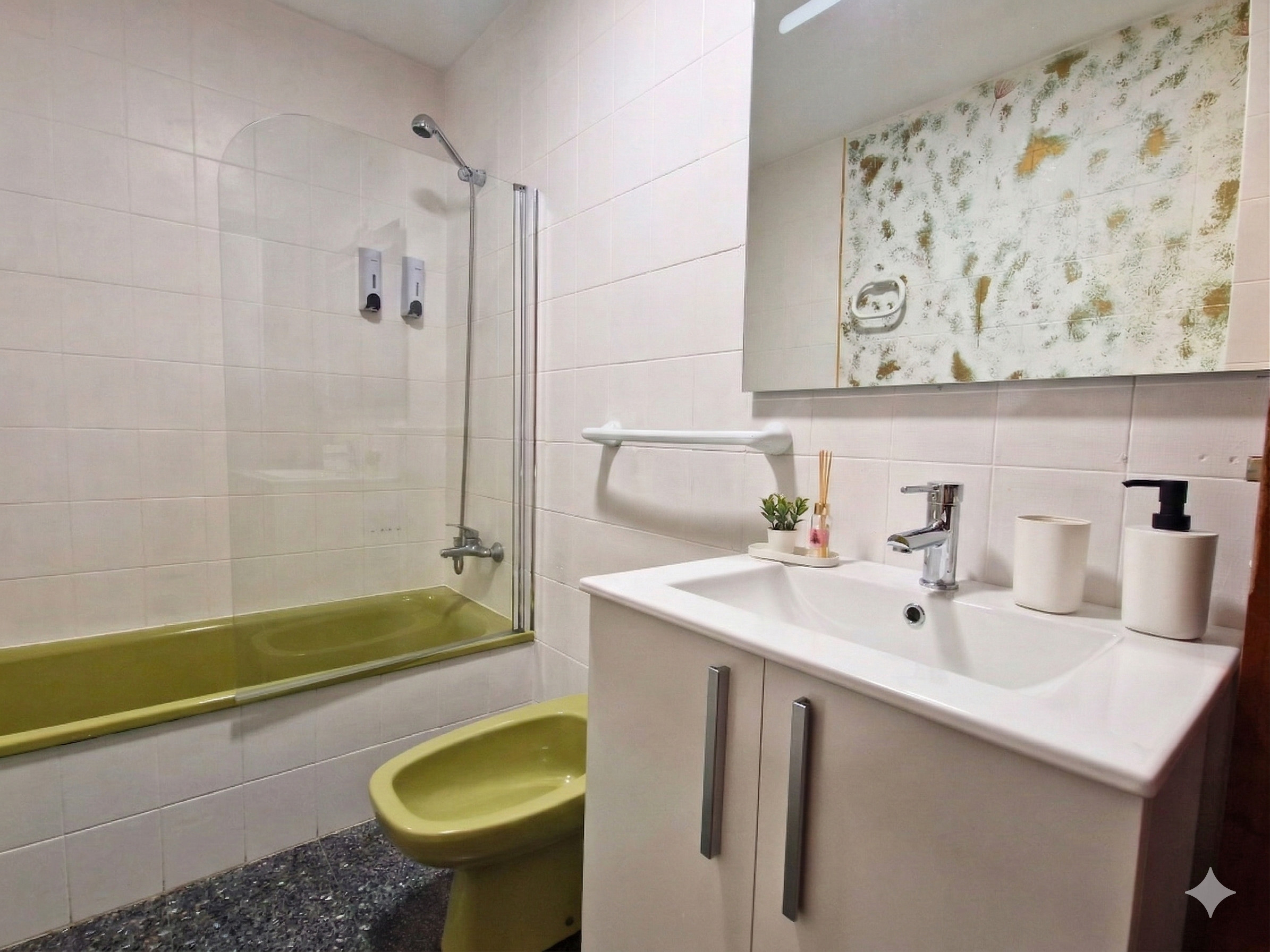 El apartamento dispone de dos baños completos con bañera, toallas y secador de pelo, pensados para cubrir todas tus necesidades durante la estancia.
