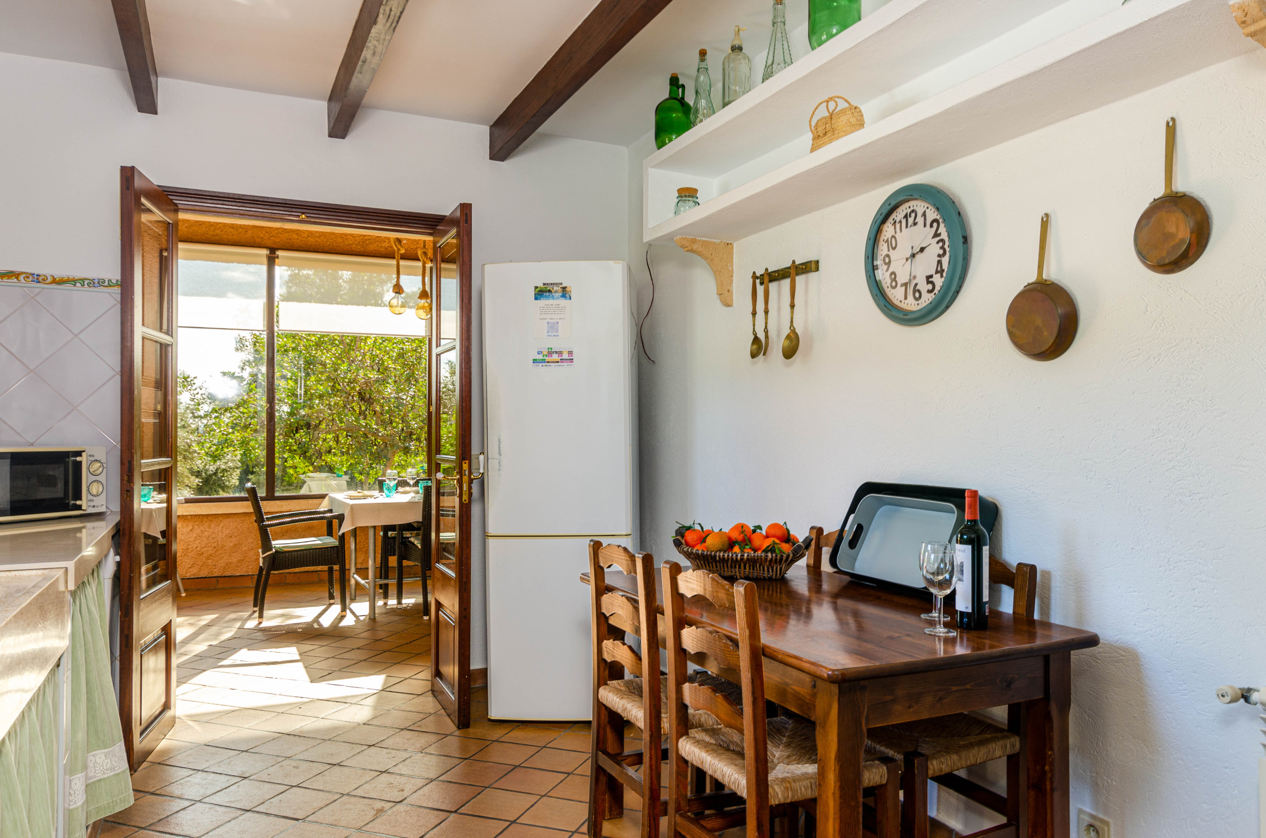 La casa de una sola planta está equipada para satisfacer todas las necesidades de los huéspedes. La cocina independiente y completamente equipada cuenta con encimera de inducción, cafeteras de filtro, Dolce Gusto, Nespresso e italiana, lavavajillas, microondas, horno, utensilios y vajilla completa. El salón ofrece un cómodo sofá, televisión satelital y conexión wifi rápida, ideal para quienes necesitan teletrabajar. En cuanto a la colada, dispone de 2 lavadoras, secadora, plancha y tabla de planchar.