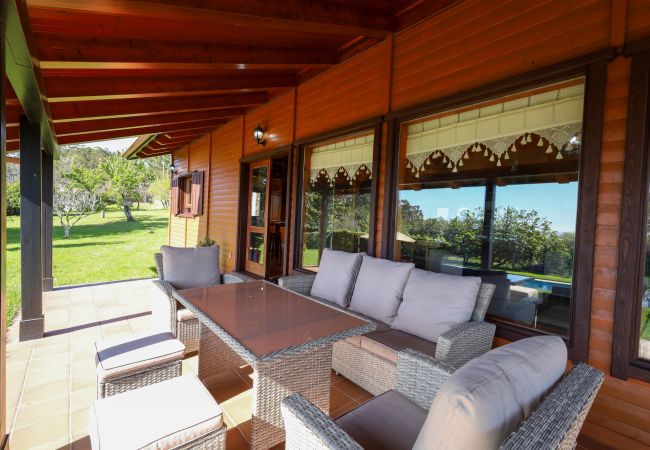 Descubre el refugio perfecto para tus vacaciones en esta preciosa casa de madera, rodeada de naturaleza. Situada en una parcela amplia, con un jardín extenso y muy bien cuidado, esta casa es ideal para desconectar del ritmo diario.