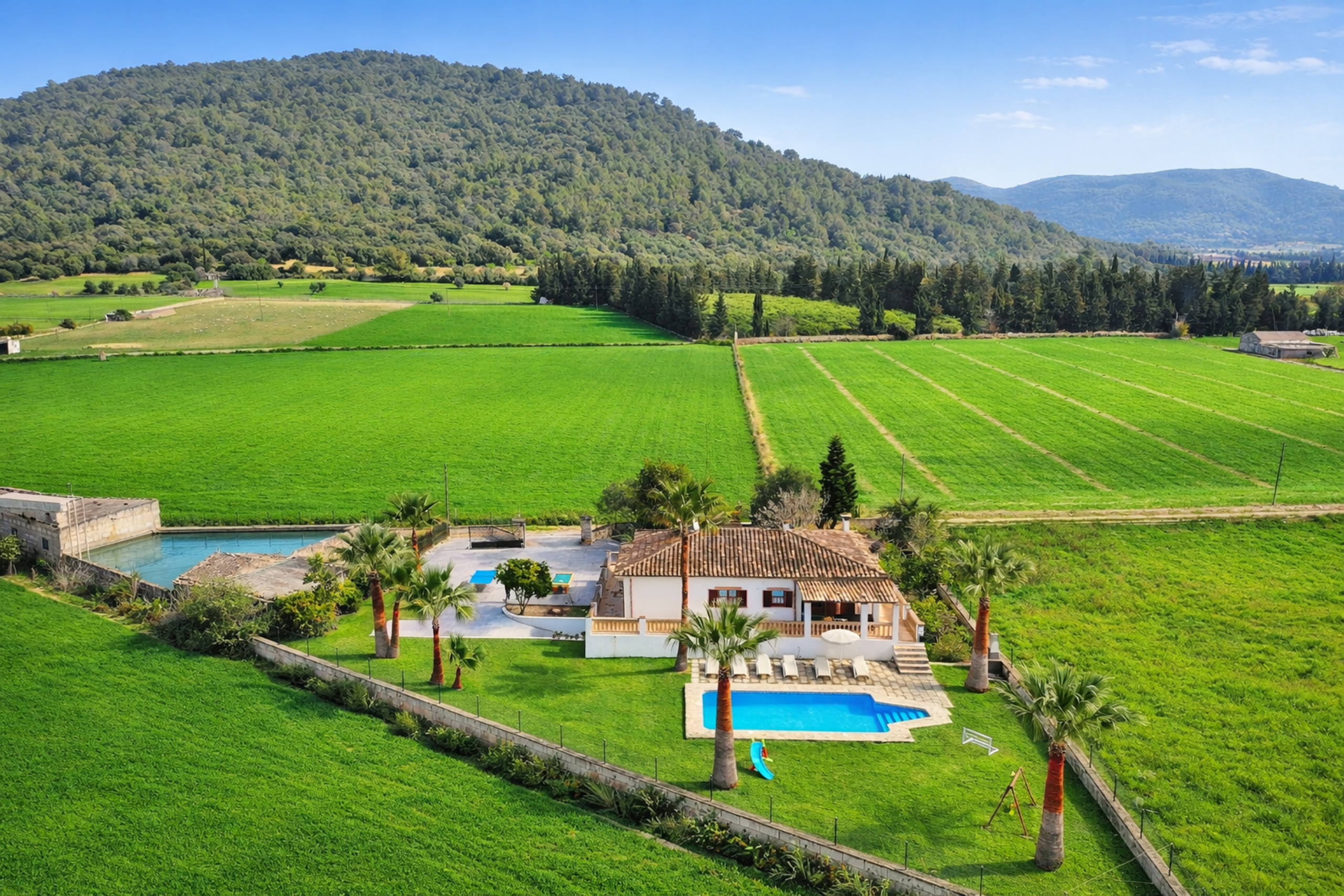 Excellent villa, good space both inside and out, while the location is isolated, with a car you are in a great location for Sa Pobla, Alcudia, Pollensa etc and only 35 mins or so from the airport.