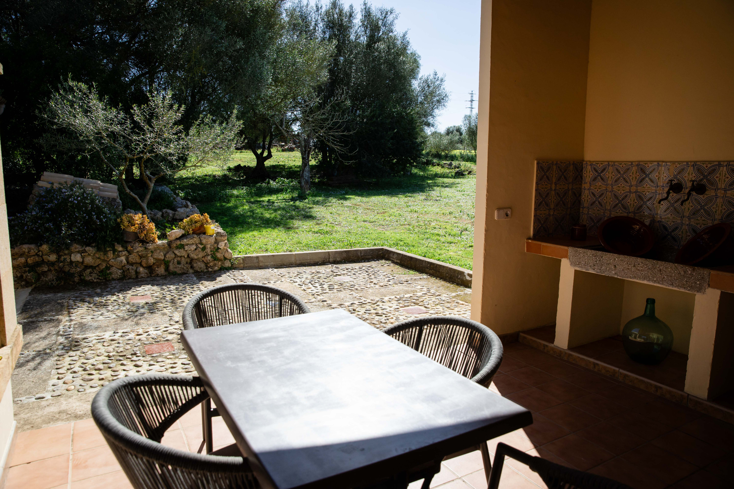 Die Villa in Ariany verfügt über 3 Schlafzimmer und hat eine Kapazität für 5 Person(en). Die hübsche und voll ausgestattete Unterkunft verfügt über 280 m². Die Unterkunft befindet sich 0 m vom Bahnhof entfernt, 0 m vom , 2 km von der Stadt "Ariany", 2 km vom Supermarkt "Botiga Nova", 3 km vom "Restaurante-Celler Ca's Padri Toni", 15 km vom zum Sandstrand "Can Picafort", 42 km vom Flughafen "Son Sant Joan", in einer idealen Umgebung für Familien und auf dem Land.Die Unterkunft verfügt über einen Garten, Gartenmöbel, ein umzäuntes Grundstück, Terrasse 500 m², eine Waschmaschine, einen Grillplatz, ein Bügeleisen/-brett, ein Internetanschluss (WLAN), ein Föhn, eine Zentralheizung, einen Parkplatz im Freien (3 Stellplätze) auf dem Grundstück, 1 Fernseher, Satelliten-TV (in den folgenden Sprache(n): Spanisch, Englisch, Deutsch).Die Separate Küche mit Gas-Kochfeld ist ausgestattet in einen Kühlschrank, eine Mikrowelle, ein Backofen, Gefrierschrank, eine Spülmaschine, Geschirr/Besteck, Kochutensilien, eine Kaffeemaschine, einen Toaster und einen Wasserkocher.