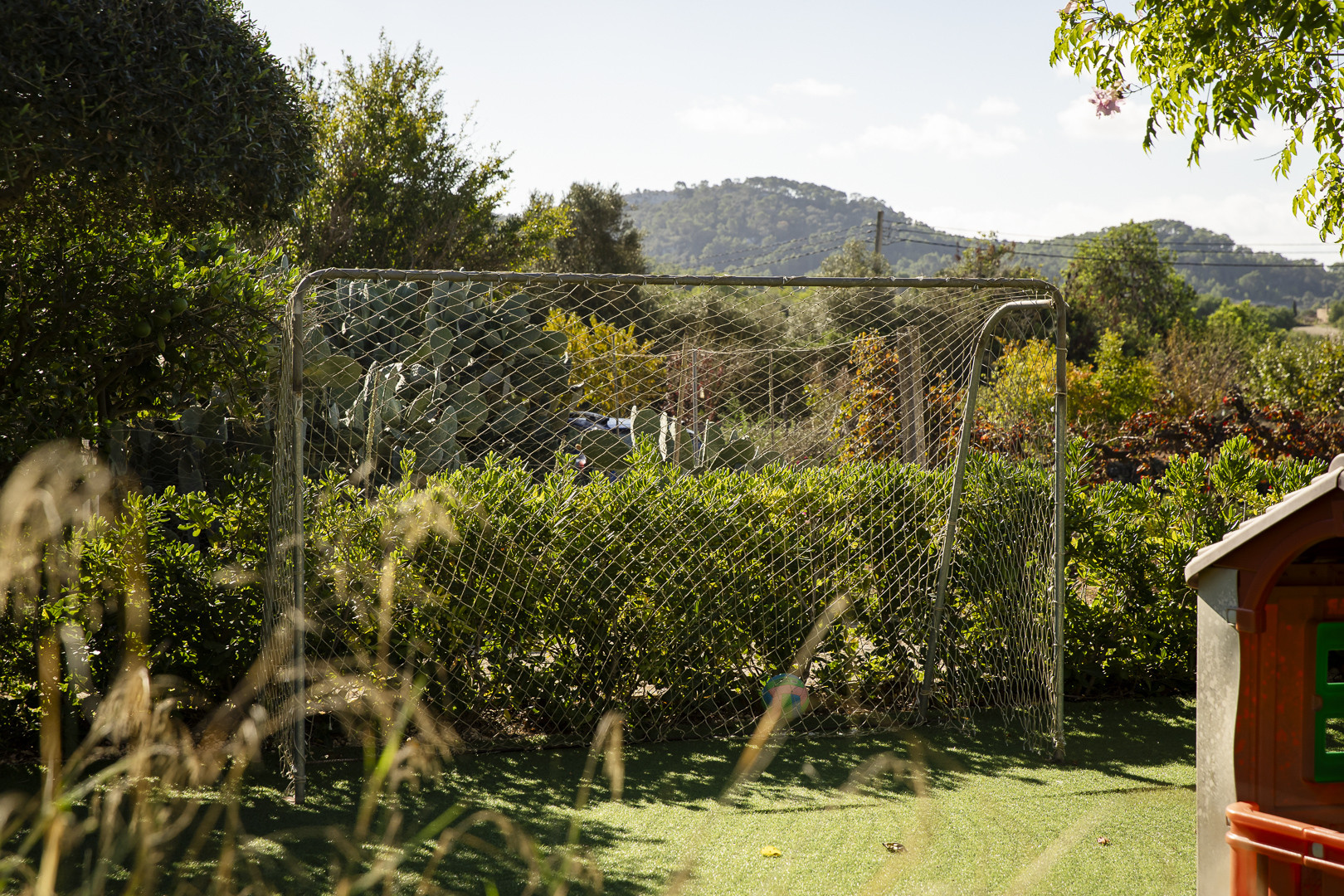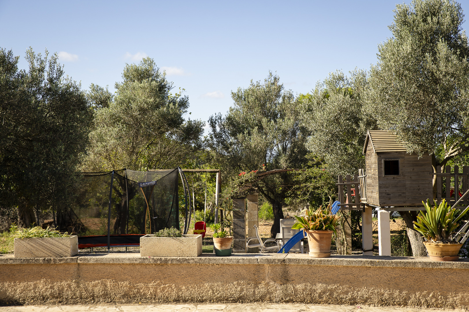 Die Villa verfügt über einen spektakulären Chlorpool von 7 x 3 Metern mit einer Tiefe zwischen 0,5 und 1,75 Metern, geeignet für Kinder und Erwachsene. Umgeben von einer großen Sonnenterrasse mit Liegen ist es der perfekte Ort, um unter der mallorquinischen Sonne zu entspannen. Der sorgfältig gepflegte Garten bietet eine ruhige und private Atmosphäre. Zusätzlich gibt es eine rustikale, möblierte Veranda, ideal für Mahlzeiten im Freien oder zum Grillen mit Familie und Freunden. Zur Bequemlichkeit gehören eine Außentoilette und eine Außendusche. Kinder haben ihren eigenen Spielbereich mit Rutsche. Der Parkplatz ist kostenlos und befindet sich außerhalb des Grundstücks.