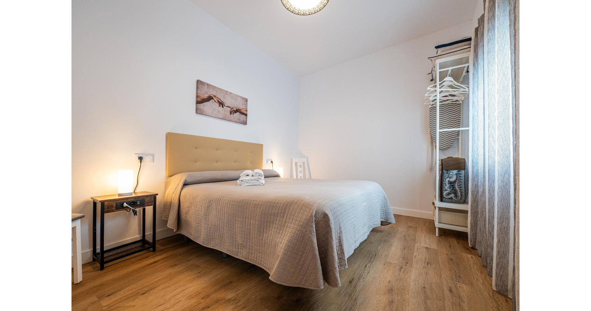 Inside you will find a modern and practical space: integrated kitchen, living room and dining room, with induction hob, fridge, Italian coffee maker, toaster and complete tableware. The living room has air conditioning, flat-screen TV and WiFi connection. In addition, it has a comfortable sofa bed designed for two children. The main bedroom offers a double bed and also air conditioning, ensuring cool and peaceful nights.