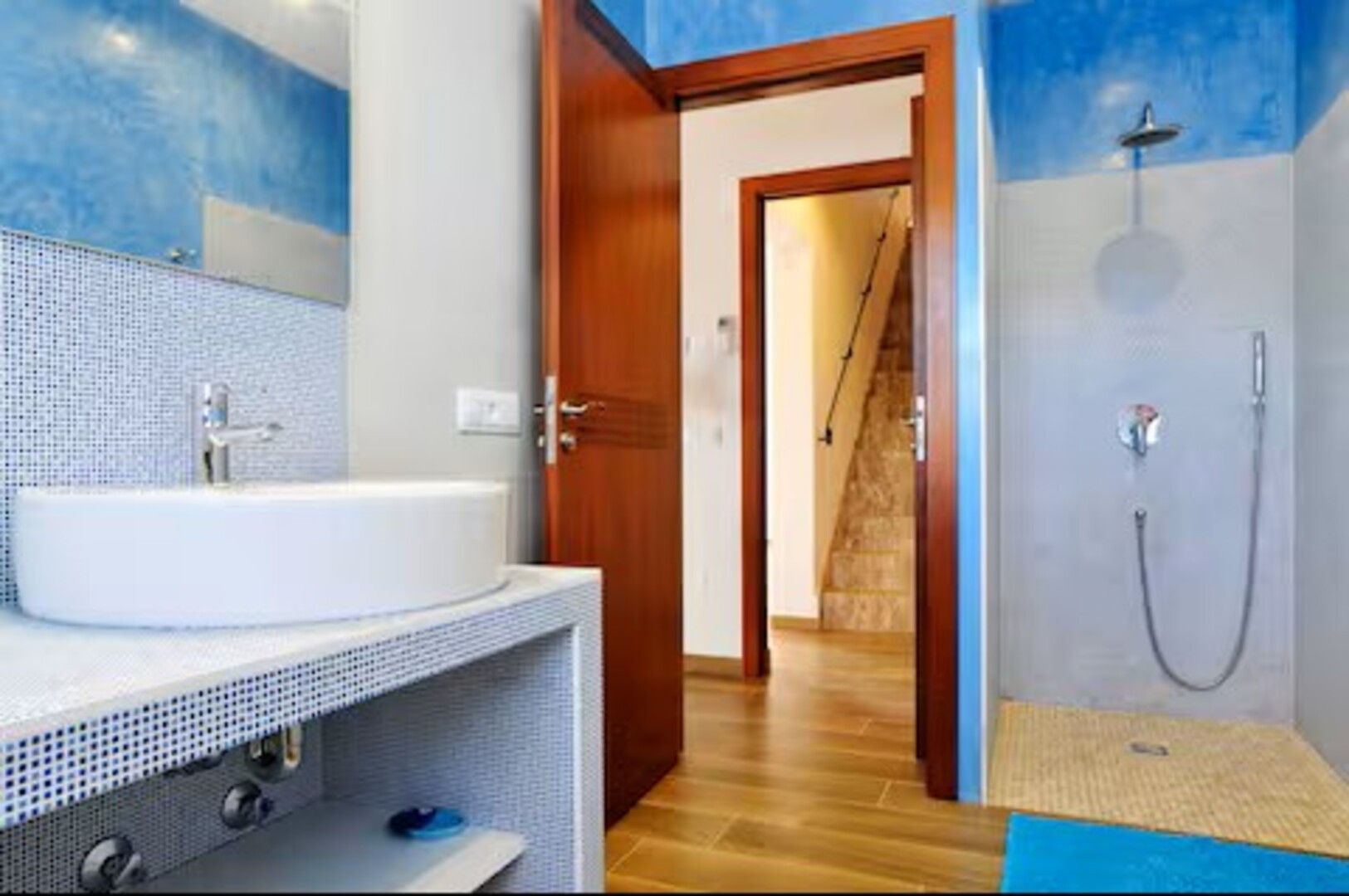 The interior of the house is fully equipped to ensure a comfortable stay. It features a modern open-plan kitchen with state-of-the-art appliances, including a fridge, washing machine, dishwasher, oven, microwave, coffee maker and other utensils. The living room has air conditioning and WiFi connection to keep you connected.