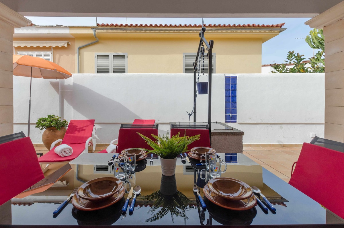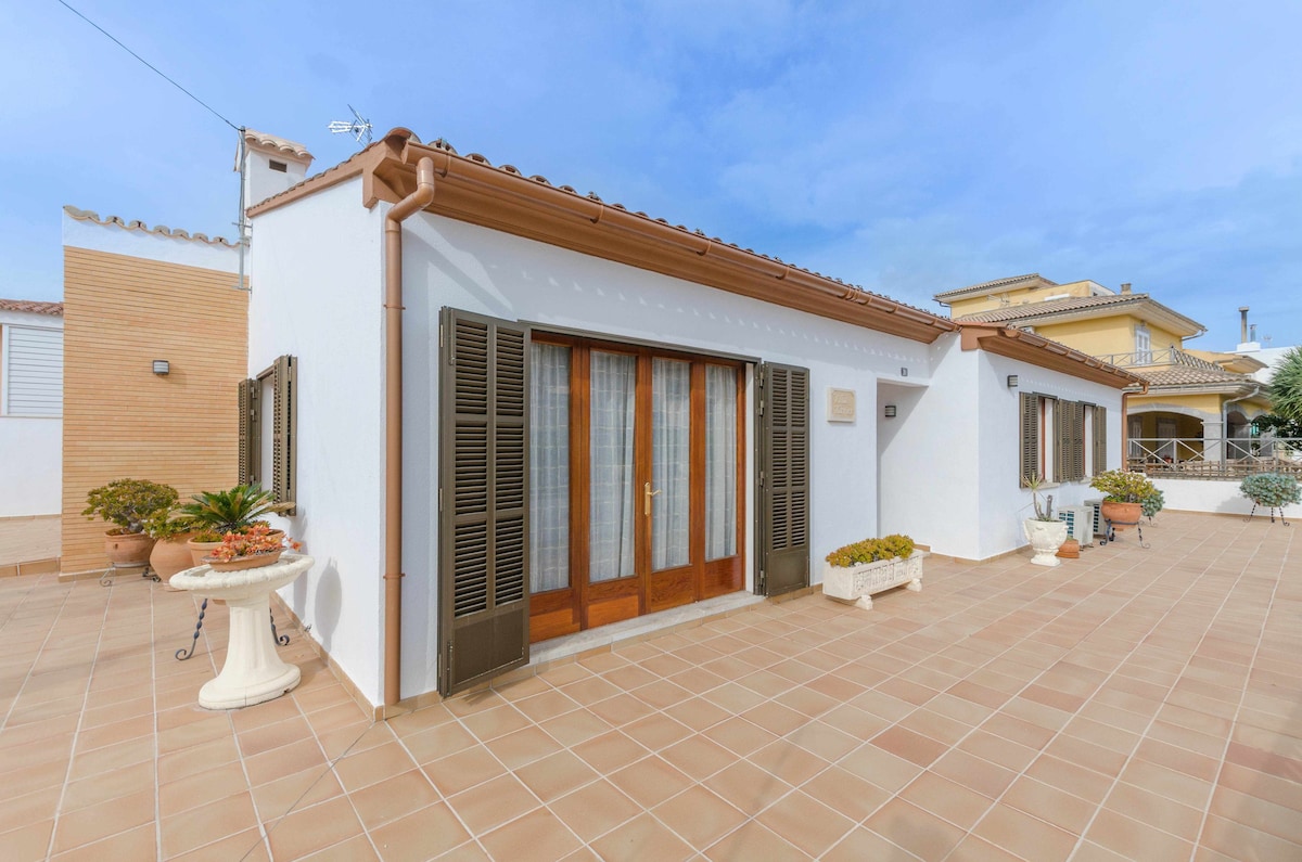 What about starting your day with a large breakfast on the terrace, enjoying the first sunlight? Afterwards, you may go to the beach, which is 300 meters from the house. The fine grained sand beach counts with lots of services and a nice sea promenade. Supermarkets, bars, shops and the bus station are nearby. The beaches of Capellanes and Playa de Muro are 1.5 km from the house. Both are wonderful natural beaches with some good beach bars. The area is nice for watersports like windsurf or paddle surf, especially in the morning. There are some good restaurants nearby, for example El Puerto, Mar y Paz and Es Mollet.