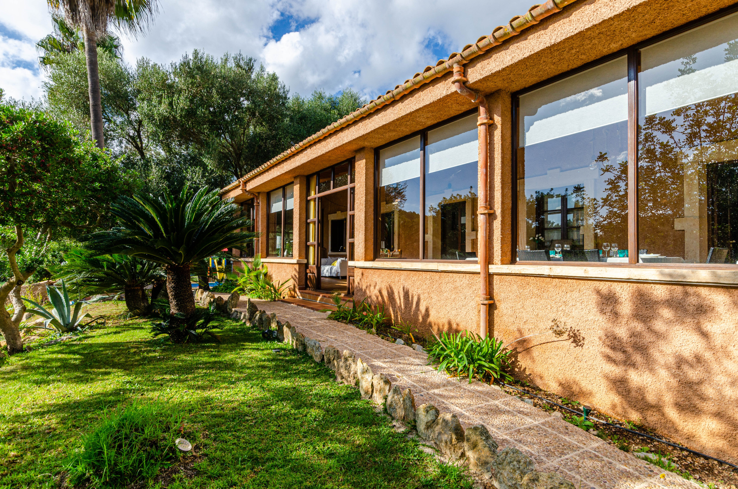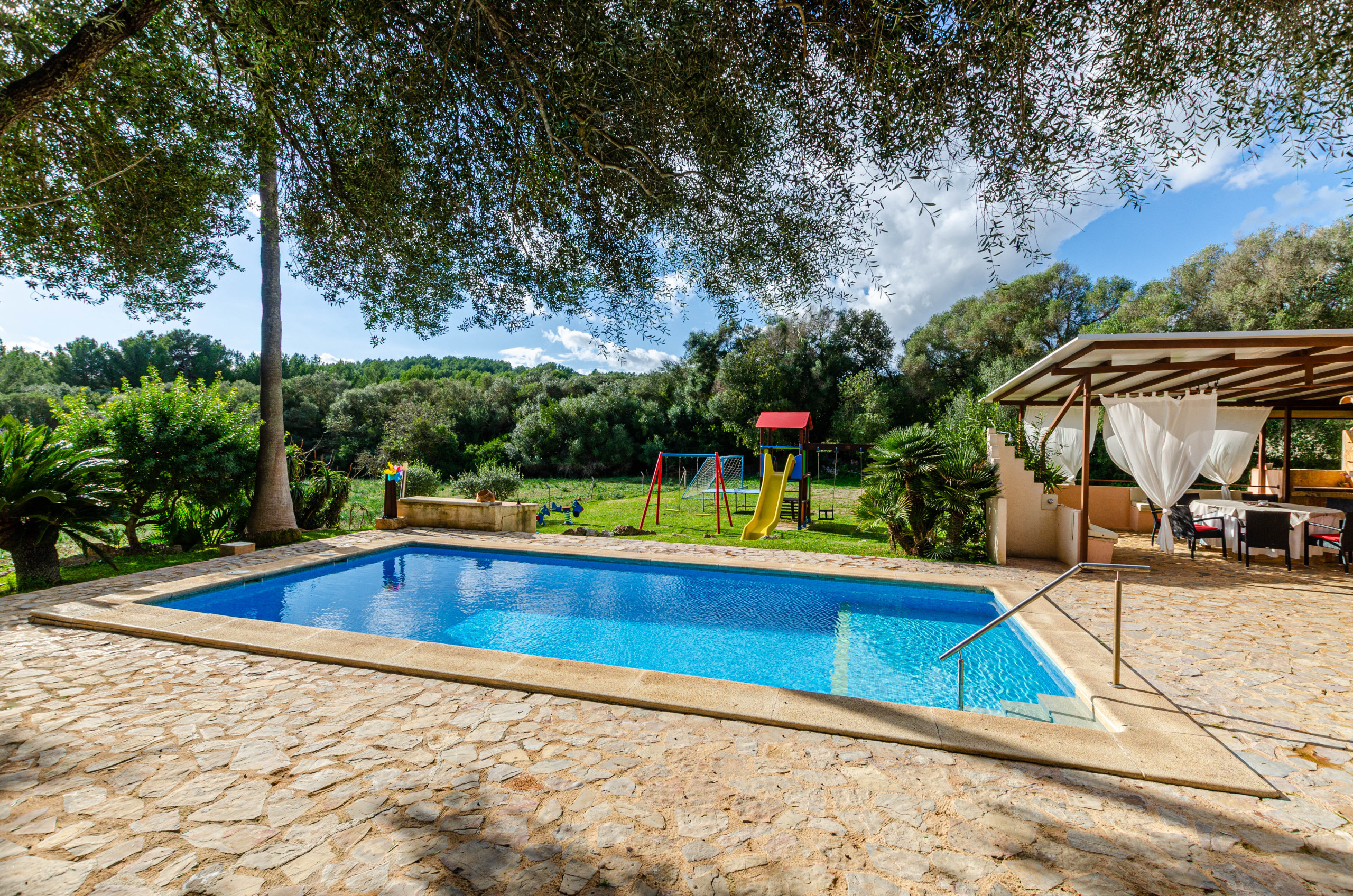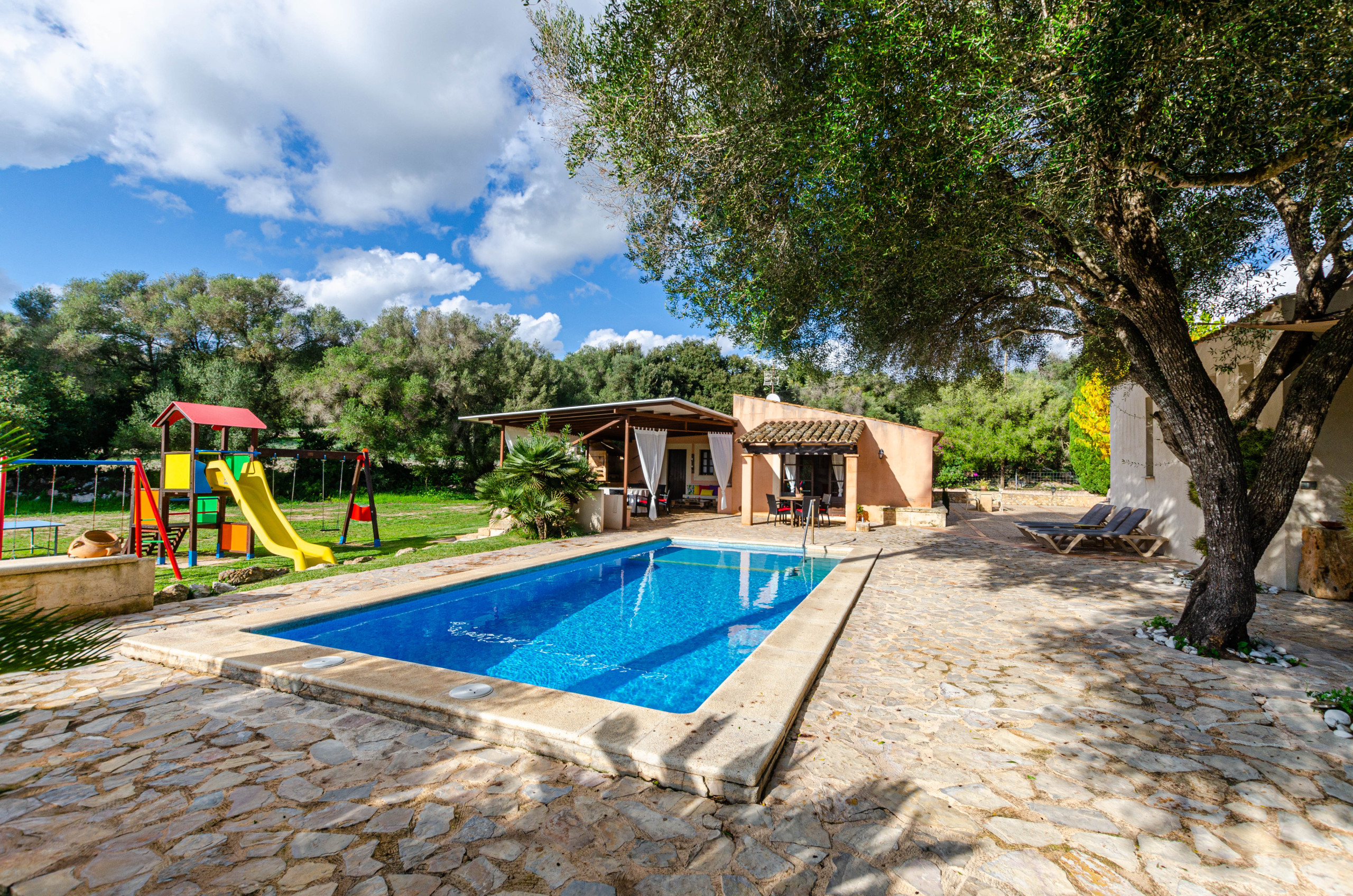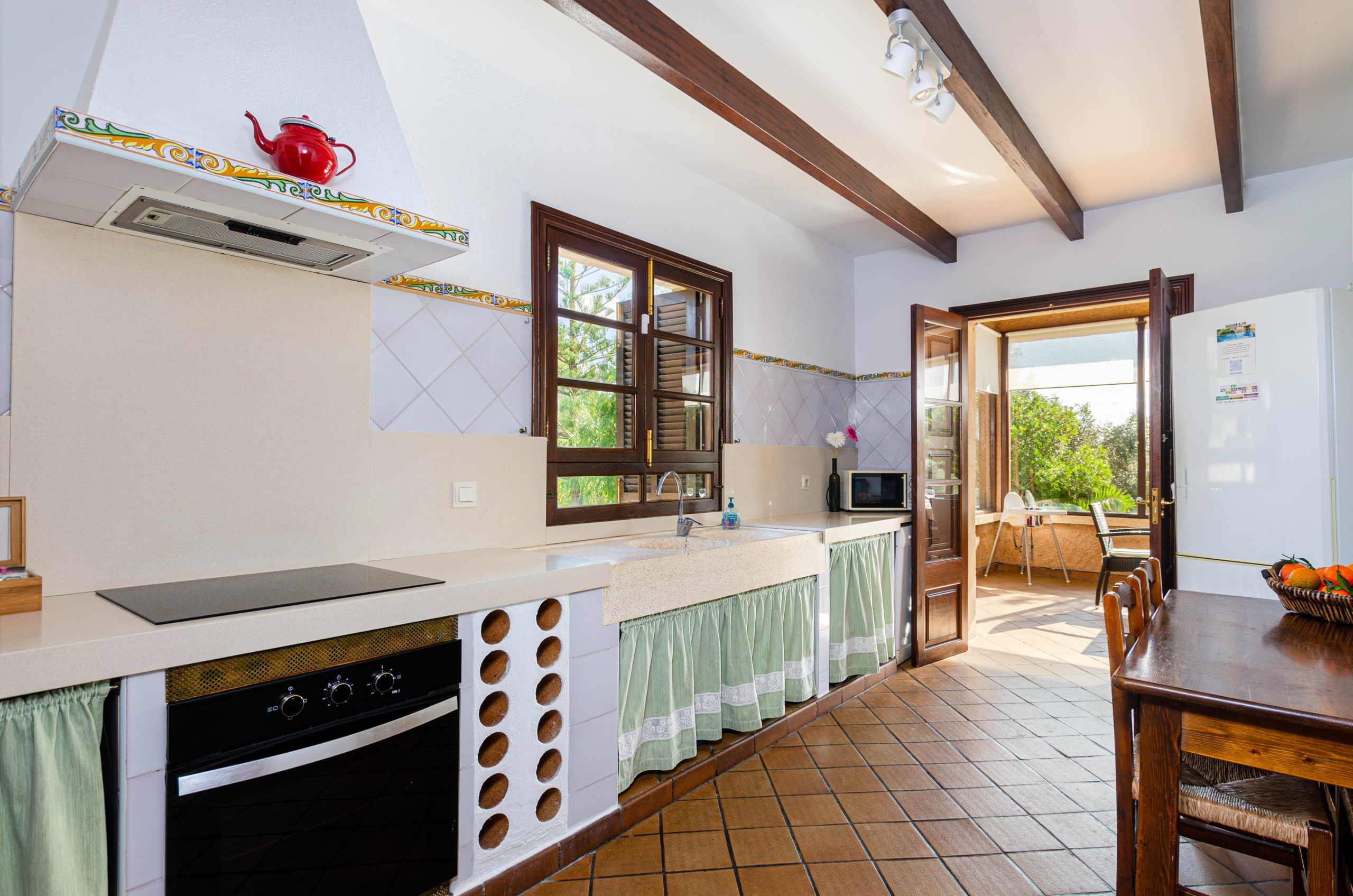 The villa in Arta has 5 bedrooms and has capacity for 9 people. The villa is comfortable, is fully-equiped, and is 260 m². It has views of the garden and the swimming pool. The property is located 0 m from the rock beach, 5 km from Agromart Artà supermarket, 5 km from Artà city, 6 km from Vermuteria by Baudot 1926 from the restaurant, 10 km from Golf Capdepera golf course, 14 km from Lidl supermarket, 16 km from Cala Agulla sand beach, 70 km from Son Sant Joan airport. The house is situated in a family-friendly neighborhood in a beautiful rural area.The accommodation is equipped with the following items: garden, garden furniture, fenced garden, 50 m² terrace, washing machine, barbecue, iron, internet (Wi-Fi), hair dryer, heat pump, air conditioning in all bedrooms, private swimming pool, open-air parking the same building, 1 TV, satellite tv (Languages: Spanish, English, German).In the induction independent kitchen, refrigerator, microwave, oven, freezer, dishwasher, dishes/cutlery, kitchen utensils, coffee machine, toaster, kettle and juicer are provided.