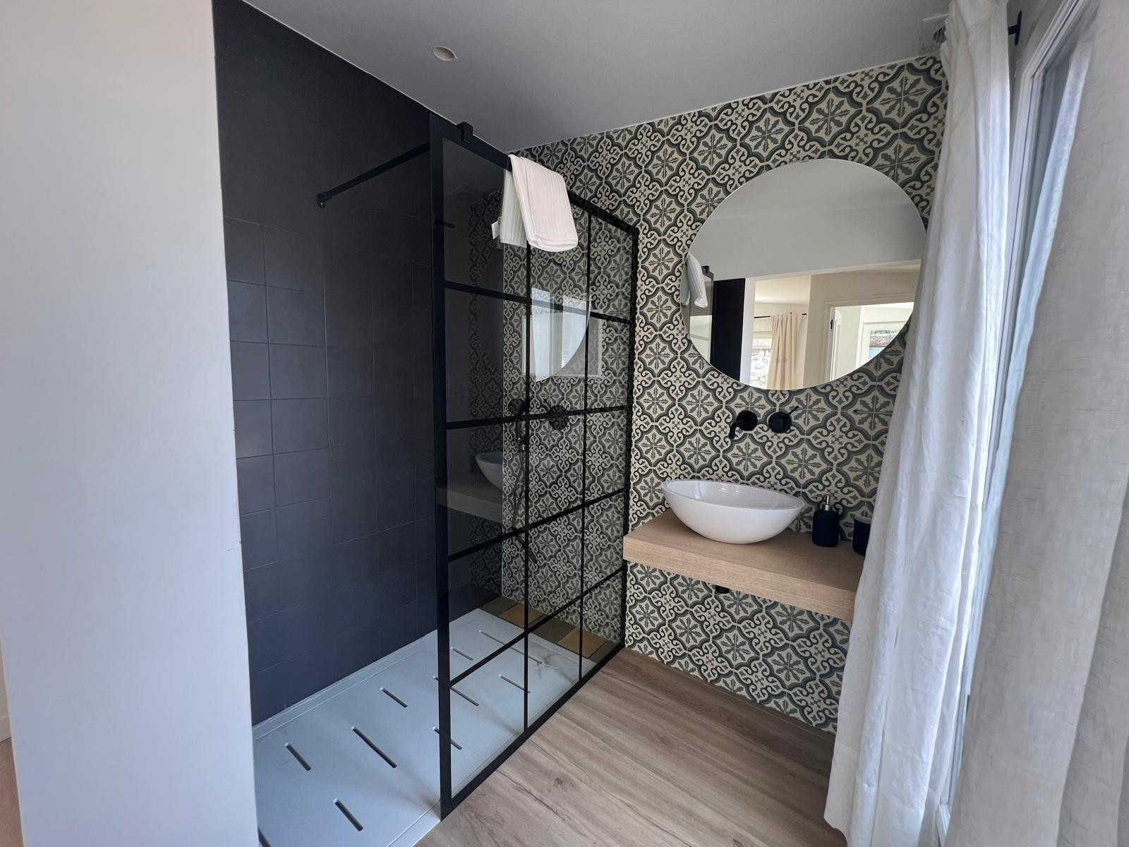 Upon entering, you find yourself in the living-dining room with an American kitchen, including an induction hob, Nespresso coffee machine, oven, kitchen utensils, and dishwasher. The air-conditioned living area invites you to relax on the comfortable sofa, watching a film. The owners renovated this house with great care, preserving elements of the former property such as the previous door frame or the natural stone walls. On the ground floor, we find a bedroom with a double bed, air conditioning, and an open wardrobe. Separately, there is a bathroom with a shower and hairdryer. A modern staircase leads to the first floor where we find two more bedrooms with double beds, air conditioning, and two additional bathrooms with showers. Upon request, we can provide a cot and a high chair subject to availability. A washing machine, iron and ironing board, flat-screen television, and Wi-Fi suitable for teleworking complete the equipment of this beautiful home. We have 2 bicycles available upon prior request, as well as a welcome pack.