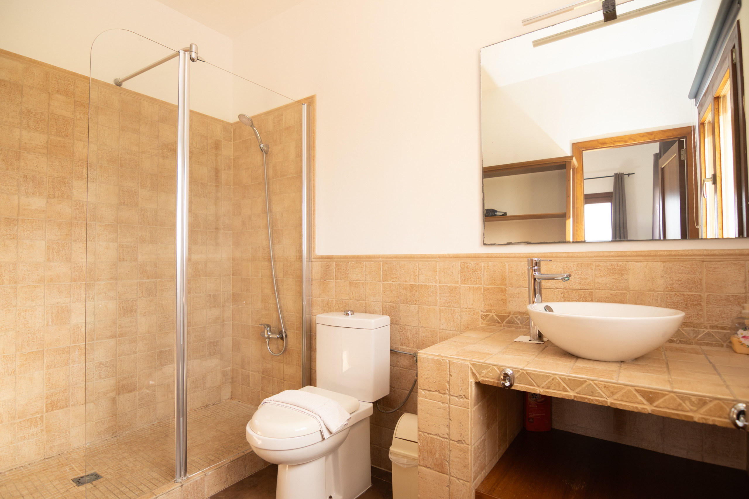 Die Finca hat eine großzügige Raumaufteilung, weil es drei Zimmer mit jeweiligem Bad-en-suite gibt.